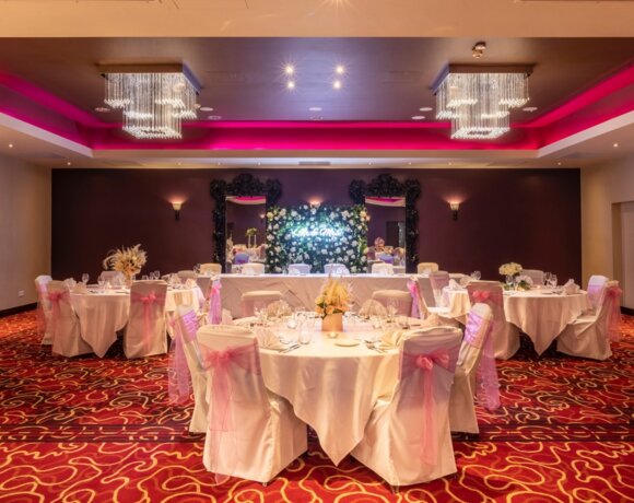 Our beautiful Merlot Suite is licensed to hold civil ceremonies and can accommodate up to 200 guests for an evening reception. It has access to a paved area and landscaped garden, ideal for those all-important photographs that capture your most special moments. Our professional team of wedding specialists will help to ensure everything runs smoothly so you have an unforgettable day. We'll give you the five-star treatment, providing you with a red carpet on arrival, toastmaster and table plan so you can celebrate in style.